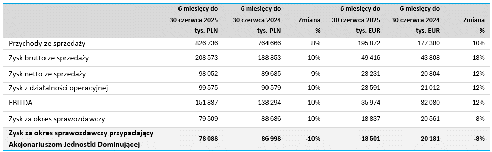 Wyniki finansowe Grupy ASEE za pierwsze półrocze 2025 roku /narastająco/